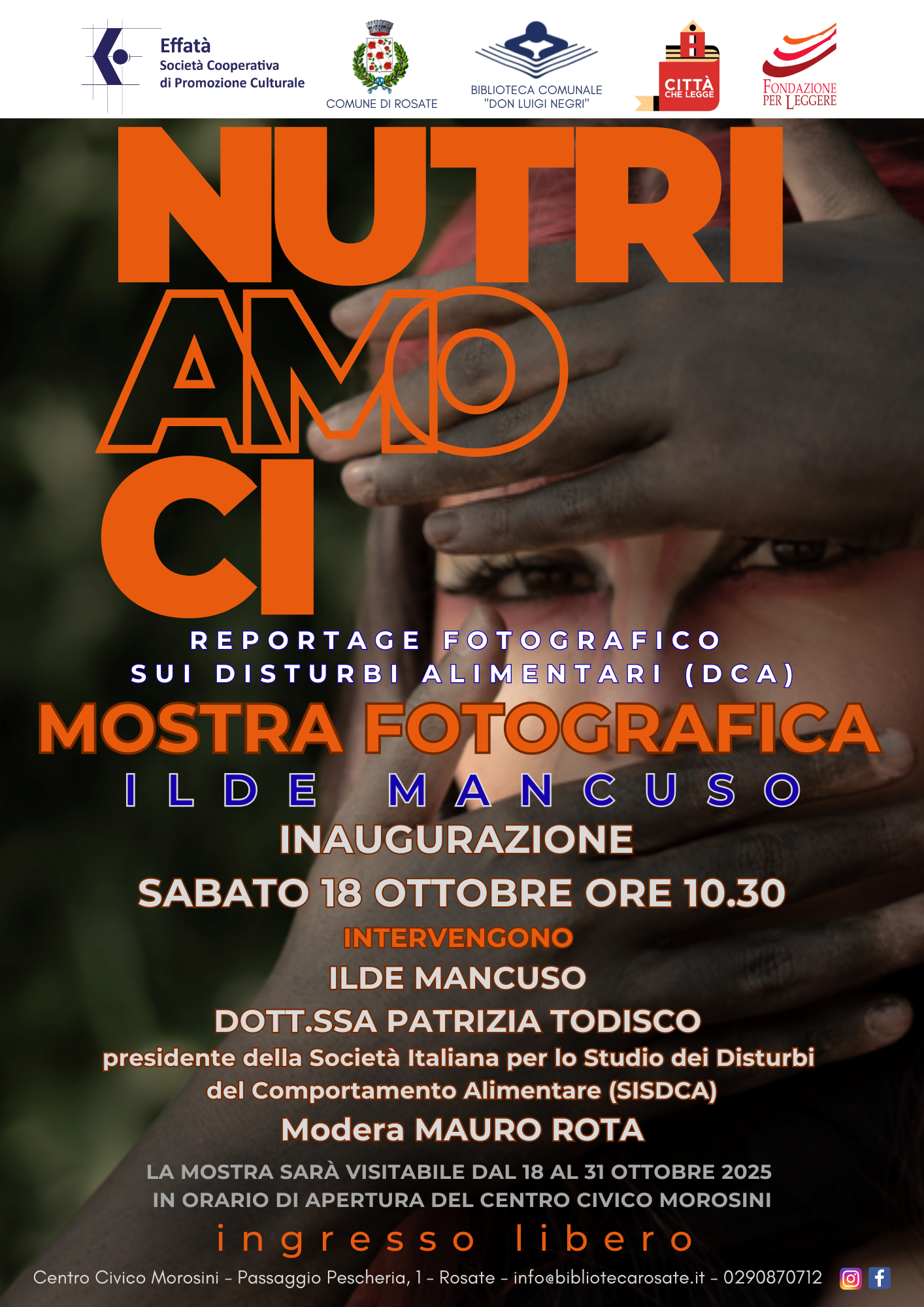 Interverranno: Ilde Mancuso (fotografa), dott.ssa Patrizia Todisco (presidente della Socità Italiana per lo Studio dei Disturbi del Comportamento Alimentare - SISDCA). Modera Mauro Rota.