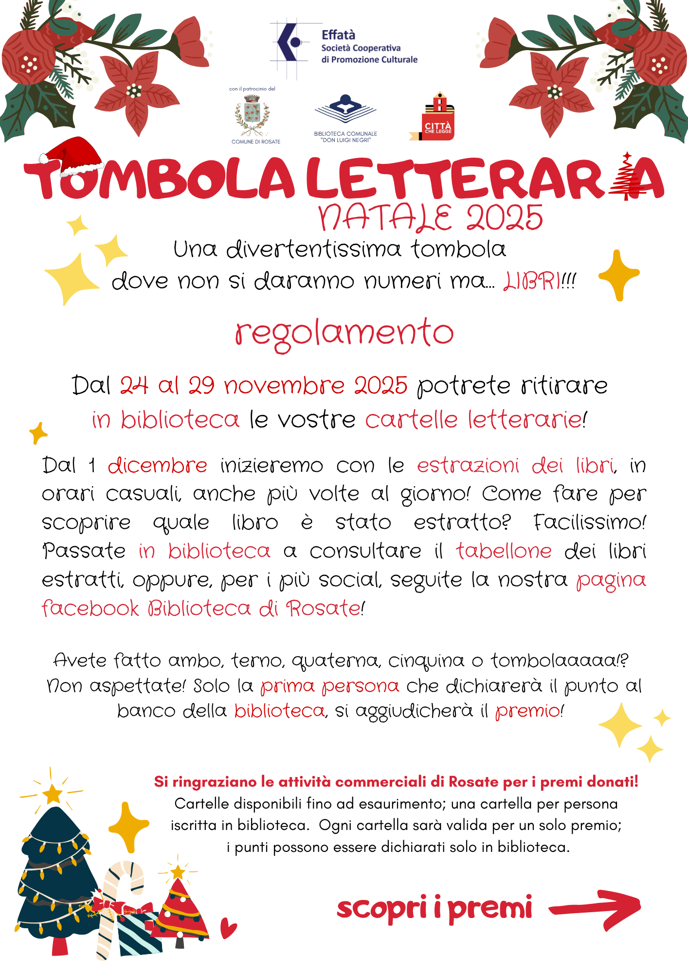 Avete fatto ambo, terno, quaterna, cinquina o tombola? Non aspettate! Solo la prima persona che dichiarerà il punto al banco della biblioteca si aggiudicherà il premio!